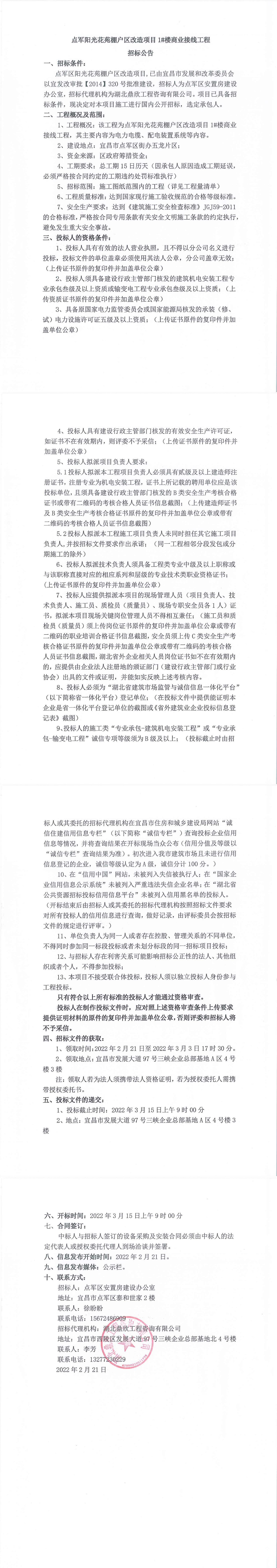 點軍陽光花苑棚戶區(qū)改造項目1#樓商業(yè)接線工程招標公告