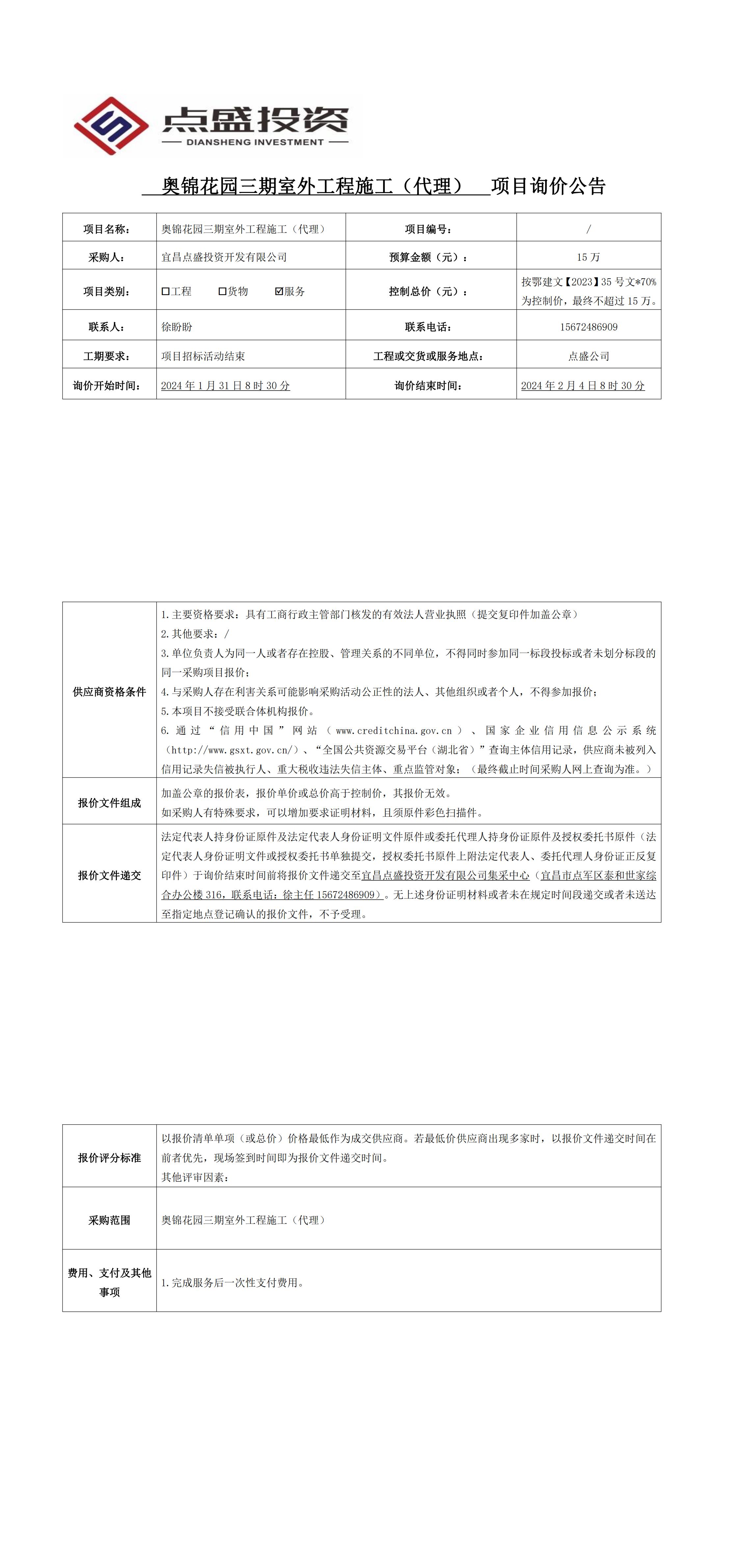 奧錦花園三期室外工程施工(代理)項(xiàng)目詢價(jià)公告