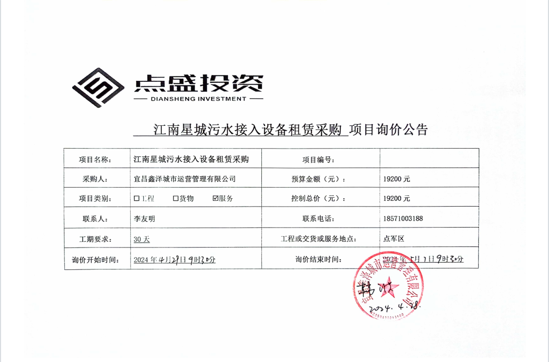 江南星城污水接入設(shè)備租賃采購詢價(jià)公告
