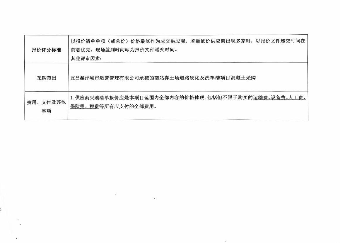 宜昌鑫澤城市運(yùn)營(yíng)管理有限公司南站棄土場(chǎng)道路硬化及洗車槽混凝土采購項(xiàng)目詢價(jià)公告