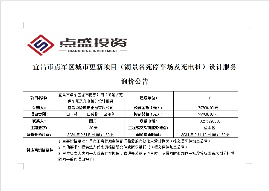 宜昌市點軍區(qū)城市更新項目(湖景名苑停車場及充電樁)設計服務詢價公告
